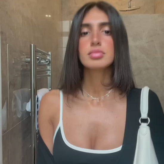 Brassière de sport tissu respirant et antitranspirant design noir et blanc.